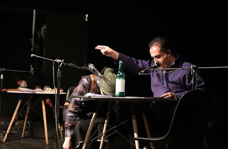 مجید آیینه برای صدابرداری نمایش کمدی کافه از تهران